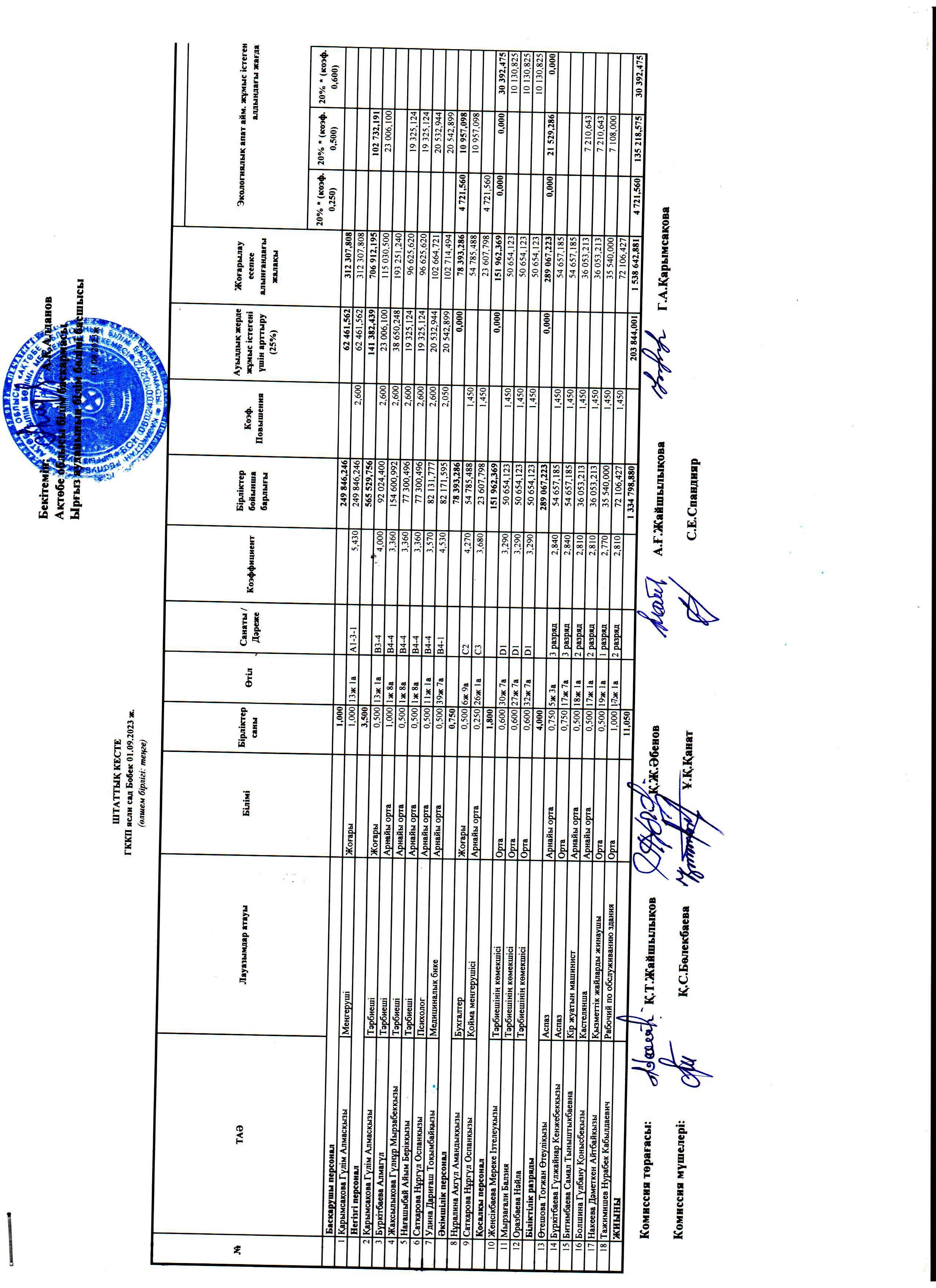 Штаттық кесте